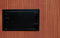 Wenn Sie mit dem Cursor die schwarze Klappe der Dockingstation berühren öffnet sich der Sesam und man sieht sein elektronisches Innenleben. Zum Anschluß der gesamten Steuereinheit, die Sie rechts im Bild sehen und welche Sie mit dem Cursor und Linksklick gehalten, drehen können, benötigt man lediglich ein einziges (ganz schön dickes, aber nur mit einem großen Stecker versehenes) Steuerkabel und ein Stromkabel.